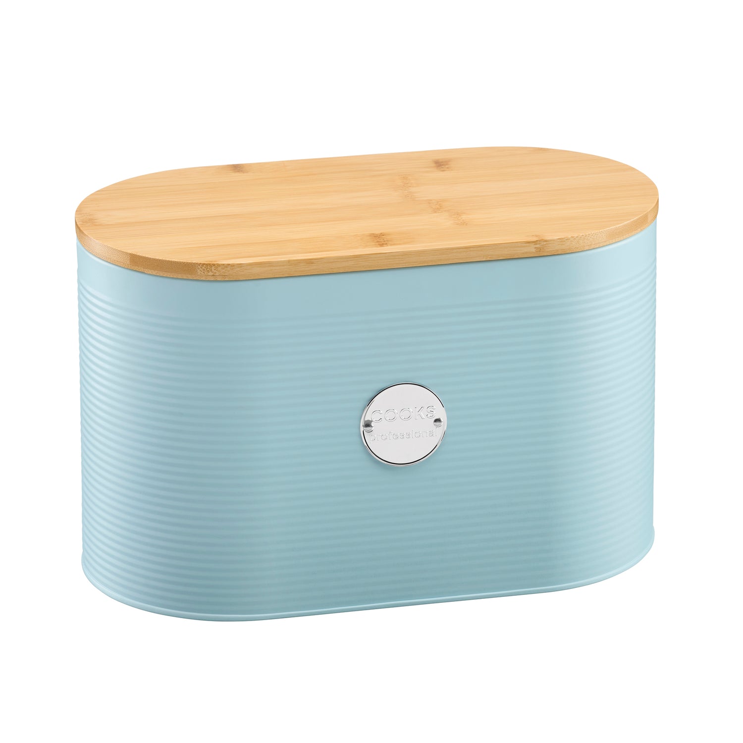 Cooks Professional Bread Bin, Linen Bag and Bamboo Board Set | Blue / Silver