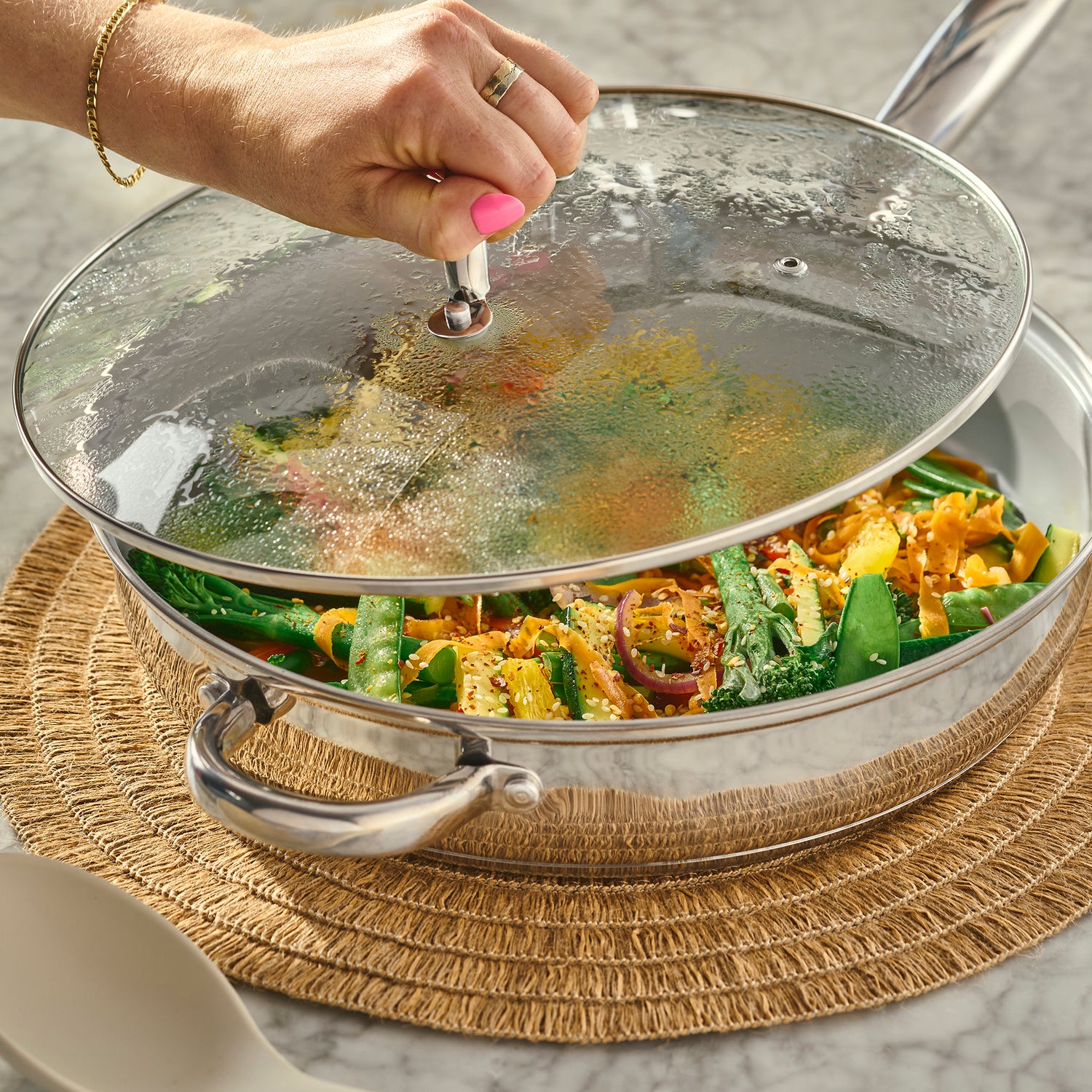 Keep an eye on your cooking with the included glass lid. The built-in steam vent helps prevent pressure build-up, ensuring your meals cook evenly and efficiently.