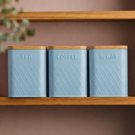 £42.99£44.99Unit price /UnavailableCooks Professional 3 Piece Square Kitchen Storage Set with Bamboo Lids | Blue