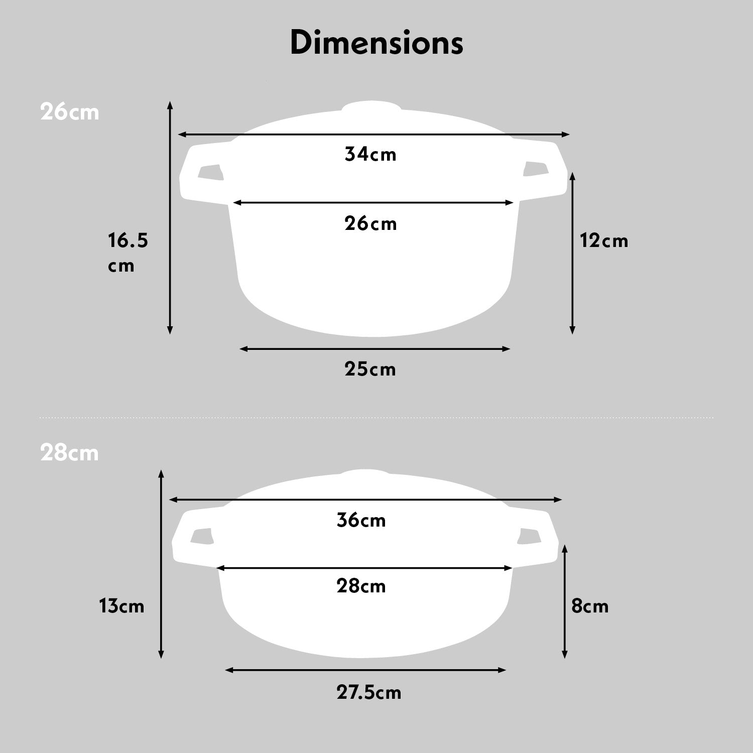 - Perfect Pairing: Get creative in the kitchen with a 26cm round and a 28cm shallow casserole set – the ultimate cooking duo. These enamelled cast iron casseroles with their matte black enamelled interiors adapt to all sorts of cooking environments, including oven, hob, induction and grill, providing endless possibilities for culinary exploration and experimentation.